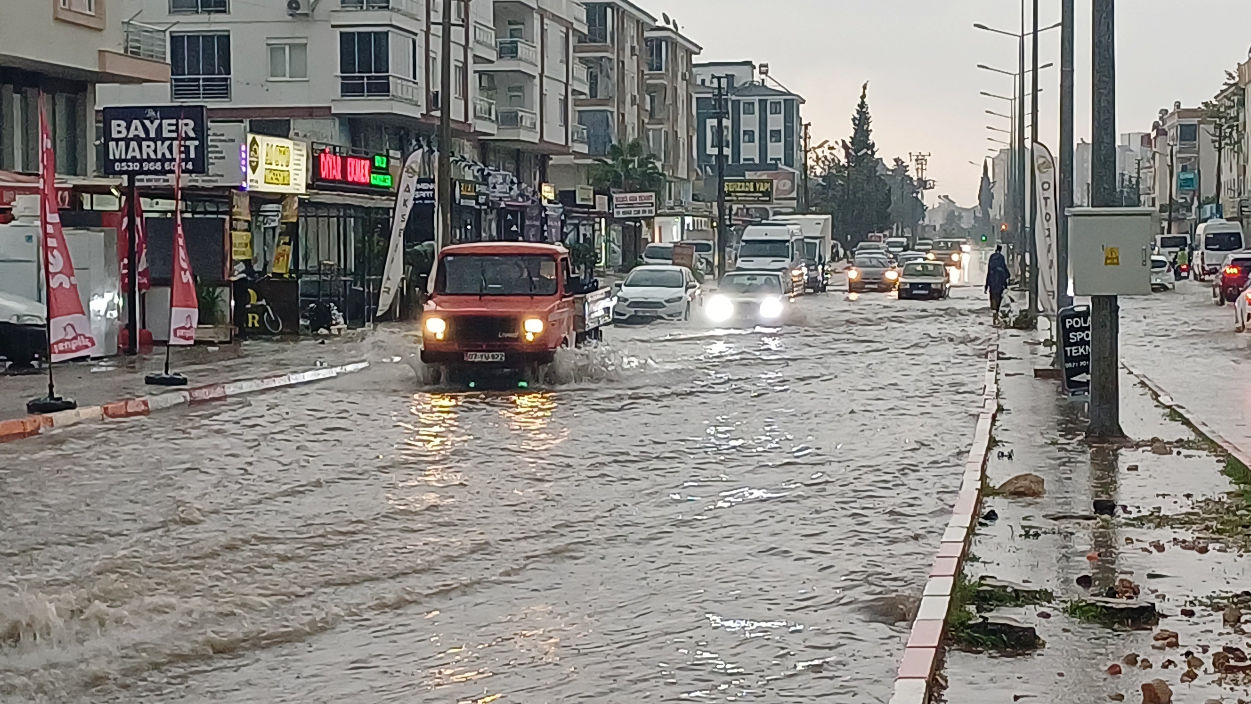 Sürücüler, trafikte araçlarıyla ilerlemekte güçlük çekti. Meteorolojiye göre, ilçede son 24 saatte metrekareye 95 kilogram yağış düştü. Belediye ekipleri, yağışın ardından önlem aldı